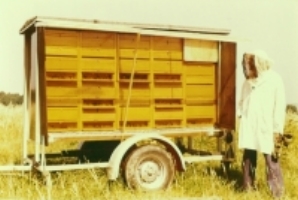 Arthur Matschull mit seinem neu konstruierten Bienenwagen 1975